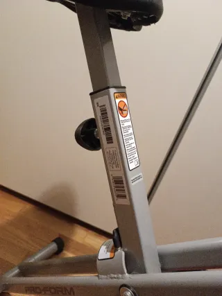Bicicleta estática Pro-Form como nueva de diseño plegable, ideal para entrenar en casa. - Estructura metálica. - Asiento acolchado. - Pedales con agarre. - Manillar ergonómico.