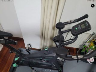 Bicicleta de spinning Bodytone modelo EX2 en color negro. Se pueden contar con los dedos de la mano los día que se ha usado, por eso la quito, pero está nueva. - Diseño moderno y robusto. - Rueda de inercia. - Pedales con agarre. - Ajuste de altura del sillín y manillar.