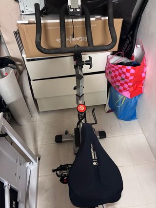 Bicicleta de spinning para entrenamientos en casa. - Manillar ajustable. - Sillín con funda de memory foam. - Resistencia regulable. Marca bh