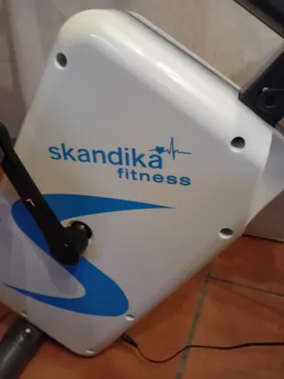 Bicicleta estática de la marca Skandika Fitness, ideal para entrenamientos en casa. Su diseño es moderno y funcional. - Color blanco y azul. - Pantalla digital. - Soporte para botella.