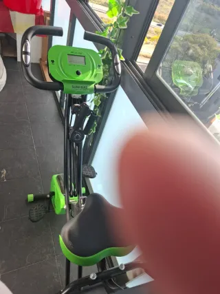 Bicicleta estática Cecotec X Bike en color negro y verde. - Diseño plegable para fácil almacenamiento. - Sillín acolchado y ajustable. - Manillar ergonómico. tiene un pedal roto pero funciona igual