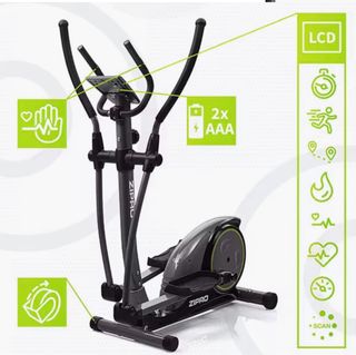 Bicicleta elíptica Zipro Hulk en color gris y negro con detalles verdes. Comprada agosto 2025 por 299 euros. Nada de uso. - Diseño moderno y robusto. - Soporte para botella de agua integrado. - Pantalla digital para seguimiento de entrenamiento.
