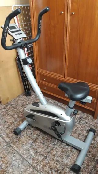 Bicicleta elíptica de la marca BH en buen estado. - Pantalla con marcador de velocidad, pulsaciones, tiempo, calorías... - Control de tensión del 1 al 8. - Diseño compacto. - Ideal para entrenamientos en casa.