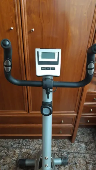 Bicicleta estática para entrenamiento en casa. - Diseño robusto y estable. - Asiento ajustable. - Manillar ergonómico. - Pedales con agarre.