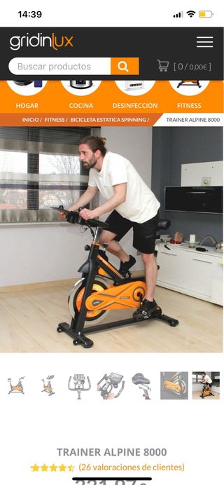 Bicicleta estática de la marca Grilindux, modelo Alpine 8000. Diseñada para entrenamientos en casa. - Estructura robusta en color negro y naranja. - Asiento ajustable en altura y posición. - Pedales con agarre. - Manillar con múltiples posiciones. (Para recoger en domicilio)