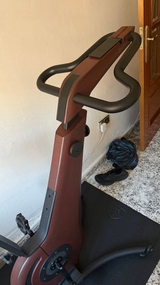 Bicicleta estática de diseño elegante y materiales de calidad. - Estructura principal en color marrón. - Asiento acolchado negro. - Base estable para entrenamiento. - Usada dos veces - Perfectísimo estado - Precio original 2.999€ - 3.799€