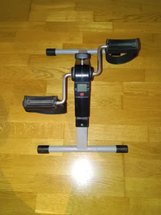 Bicicleta estática eléctrica en excelente estado, utilizada solo dos veces. - Diseño compacto y moderno. - Pantalla digital para seguimiento de ejercicio. - Pedales con correas ajustables.