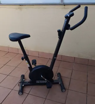 Bicicleta estática mecánica en buen estado. Nada de pijerías: sin pantallas digitales ni electrónica, todo manual y fiable. Ajuste de dureza manual Cuenta kilómetros analógico Muy resistente y fácil de mantener Perfecta para entrenar en casa de forma sencilla.