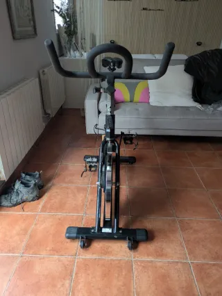 Bicicleta de spinning BH semiprofesional casi nueva unos 20 usos, ideal para entrenar en casa con calidad de gimnasio. Perfecta para entrenamientos intensos y sesiones de cardio. 🔹 Volante de inercia grande para un pedaleo fluido y silencioso 🔹 Resistencia por fricción ajustable y freno de emergencia 🔹 Manillar ergonómico tipo triatlón, sillín regulable con funda acolchada 🔹 Pedales con agarre seguro 🔹 Pantalla que muestra velocidad, distancia, tiempo, calorías y más 🔹 Ruedas delanteras para moverla fácilmente . agarre.