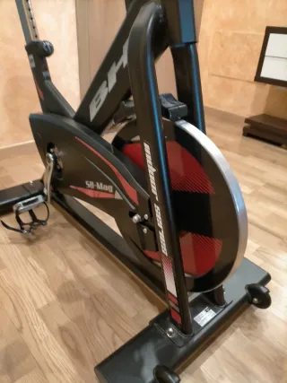 Bicicleta de spinning BH SB-Mag en perfecto estado, prácticamente nueva. - Diseño robusto y estable. - Rueda de inercia de alta calidad. - Manillar ajustable en altura y profundidad. - Sillín ergonómico. - Pedales con agarre. - Ruedas de transporte para fácil movilidad.