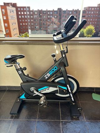 Bicicleta de spinning BH ZS600 en buen estado. Prácticamente sin uso - Diseño moderno en negro y azul. - Manillar ajustable. - Sillín cómodo y regulable. - Pedales con agarre. - Rueda de inercia. - Base estable.
