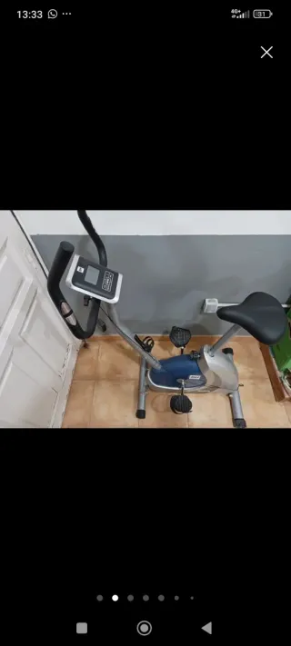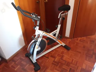 Diseñada para entrenamientos en casa. Como nueva. Uso muy limitado (sobre todo época de rehabilitación/recuperacion). - Sencilla y facil de utilizar. - Manillar ergonómico y acolchado, como nuevo. - Sillín ajustable y otro adicional acolchado como nuevo para máxima comodidad. - Pedales con correas de sujeción. - Pantalla digital con información del ejercicio: km, pulsas, kcal, - muy compacta, manillar movil para trabajar también brazos si se quiere.
