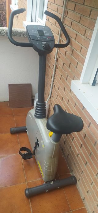 Bicicleta en perfecto estado con su cable y llaves de montaje (adjuntado en fotos). Es un modelo para un uso doméstico regular de 7 horas semanales capaz de soportar hasta 120 Kg, con una zancada de 34 cm y un sistema inercial de 12 kg. Cuenta con un sistema de freno magnético y también está pensada para que el pedaleo sea suave y silencioso con diferentes tensiones. Monitor LCD, 1 programa manual, 12 programas predefinidos (Beginner, Advance, Sporty), 1 Programa de Vatios, 4 programas de control de ritmo cardiaco Para cualquier pregunta no dudes en escribirme