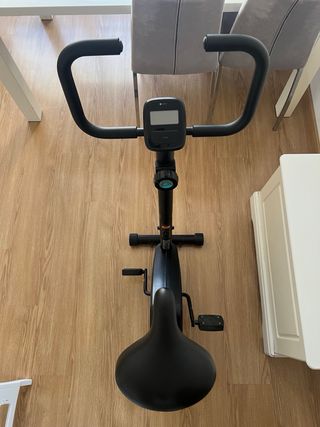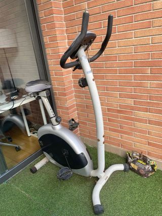 Bicicleta estática de la marca Domyos, ideal para entrenamientos en casa. A penas está utilizada, está como nueva como se puede ver en las fotos. Hasta conservo la caja original. - Pantalla digital. - Botón de modo.