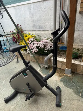 Bicicleta estática Domyos Essential Fitness, ideal para entrenamientos en casa. Su diseño compacto la hace perfecta para cualquier espacio. - Modelo: Essential Fitness - Marca: Domyos - Peso aproximado: 30 kg