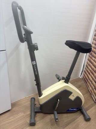 Bicicleta estática Domyos VM130 en buen estado. - Diseño compacto y funcional. - Pantalla digital para seguimiento de ejercicio. - Asiento ajustable en altura. - Pedales con agarre. - Resistencia regulable.