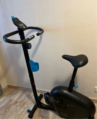 Bicicleta estática Domyos 120 en perfecto estado, casi sin uso.precio en tienda 199.99 - Rueda de inercia de 4 kg. - Diseñada para un uso de hasta 3 horas semanales. - Soporta un peso máximo de usuario de 110 kg. - Consola alimentada por pilas.