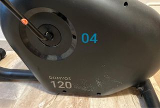 Bicicleta estática de la marca DOMYOS, ideal para entrenamientos en casa. Su diseño combina colores azul y beige, aportando un toque moderno. - Manillar con agarres cómodos. - Asiento ajustable en altura. El sillin esta perfecto . - Pedales con correas de sujeción. - Resistencia ajustable mediante dial. La pantalla no se si funciona o no , porque le pusimos un soporte para poner el movil mientras haciamos bici , todo funciona perfectamente , lleva ruedas para moverla