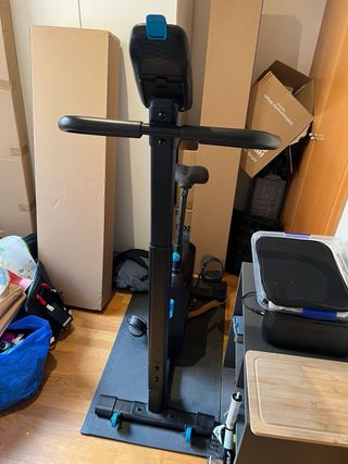 Bicicleta de ciclo indoor de la marca Domyos. Incluye ademas, portabidón de agua y un sillin acolchado. Comprada en 2025. Diseñada para entrenamientos en casa con: - Manillar ergonómico y ajustable - Sillín ajustable