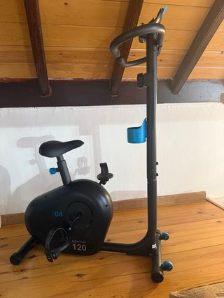 Bicicleta estática en muy buen estado, modelo DOMYOS 120. - Color negro. - Soporte para botella integrado. - Pedales con correas ajustables.