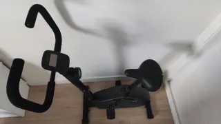 Bicicleta estática de la marca Domyos, ideal para entrenamientos en casa. Su diseño permite una posición cómoda para pedalear. - Manillar ergonómico. - Sillín ajustable. - Pantalla digital para seguimiento de datos. -como nueva 3 meses de uso Ver sin ningun compromiso.