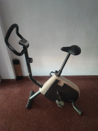 Bicicleta estática Domyos en buen estado. - Diseño compacto y funcional. - Sillín acolchado para mayor comodidad. - Pantalla digital con información de entrenamiento. - Pedales con correas de sujeción.