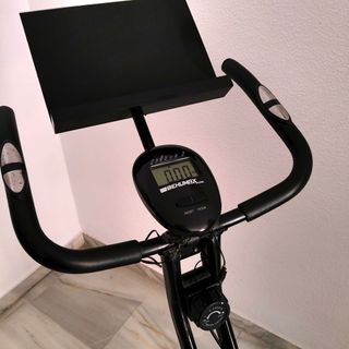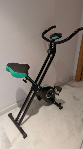 Bicicleta estática Cecotec X-Bike en muy buen estado. - Diseño plegable para fácil almacenamiento. - Sillín ergonómico y ajustable. - Manillar con agarres cómodos. - Pantalla digital para seguimiento de ejercicio.