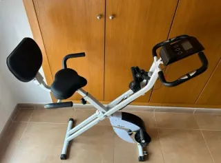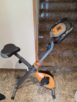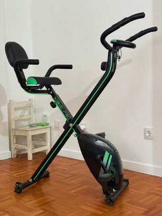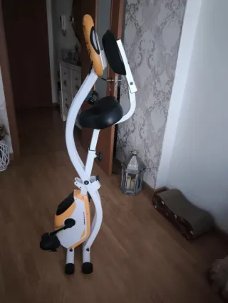 Bicicleta estática plegable en excelente estado, casi nueva. Ideal para entrenar en casa. - Diseño plegable para fácil almacenamiento. - Asiento con respaldo para mayor comodidad. - Manillar ajustable.
