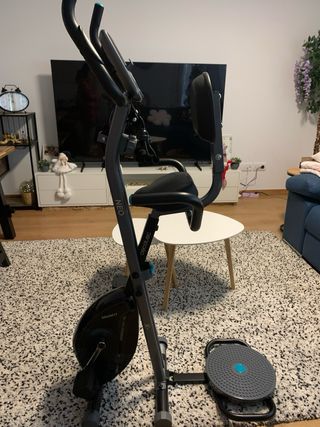 Bicicleta estática Active+ Tentable. La banda de resistencia ya no tiene fuerza por lo que es ideal para personas mayores que solo quieran mover las piernas o embarazadas que necesiten moverse algo sin hacer fuerza. El asiento es regulable en altura. Está muy bien cuidada, con el asiento y el manillar sin roturas en el acolchado. La parte de la pantalla tiene el soporte roto como se ve en las fotos. En su día lo pegué con celo. No tiene mayor importancia. No la envío por el volumen de la bici y lo poco que pido por ella. Hay que recogerla en Manresa.
