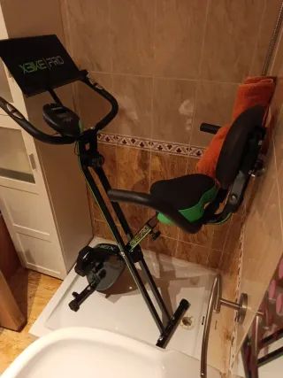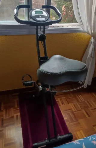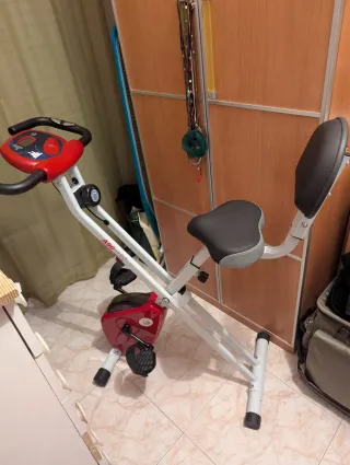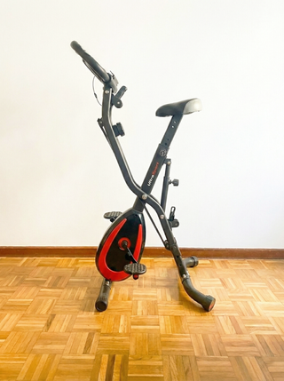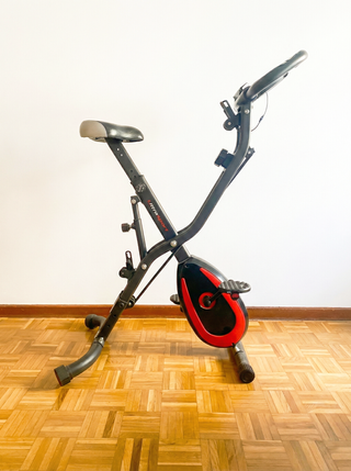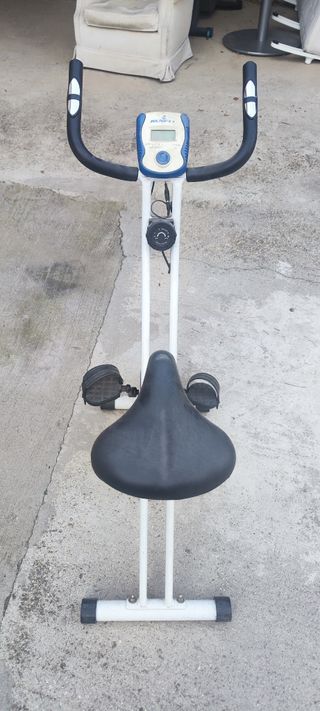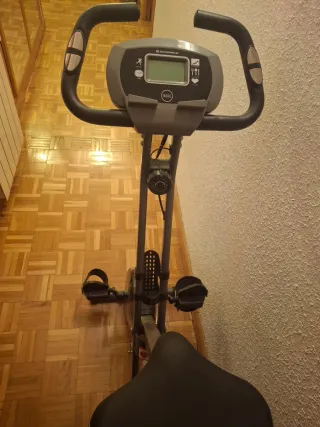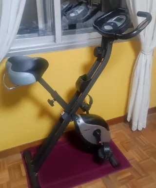Ideal para entrenar en casa. Su diseño plegable permite guardarla fácilmente. - Asiento con respaldo. - Pantalla LCD. - Sensor de Frecuencia cardíaca. - Tiradores integrados para ejercicios de fuerza de brazos. - Muy poco uso. - Pedales con agarre. - Manual de instrucciones. bici estática, bicicleta estática, bici fitness, bicicleta fitness, bicicleta de ejercicio, exercise bike, bici indoor, bicicleta indoor, bici spinning, bicicleta spinning, spinning bike, fitness en casa, gimnasio en casa, home gym, ejercicio en casa, entrenamiento en casa, cardio, entrenamiento cardio, quemar calorías, adelgazar, salud, pantalla lcd, monitor