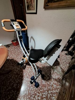 Bicicleta estática en buen estado, ideal para hacer ejercicio en casa. - Plegable para facilitar su almacenamiento. - Asiento cómodo y acolchado. - Manillar regulable en altura. - Resistencia regulable.