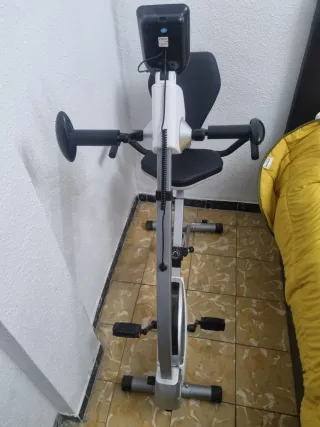 Bicicleta reclinable con conexión Bluetooth y simulador en los pedales. Tiene 2 ruedas delanteras pequeñas para moverlo. - Diseño ergonómico para mayor comodidad. - Pantalla digital con información del ejercicio Pequeños defectos en el sillón por el gato,lo demás como nuevo. Pvp 1200e. Solo ofertas serias. Pesa 53 kg, transporte a cuenta de comprador, piso 7 (no entra en ascensor)