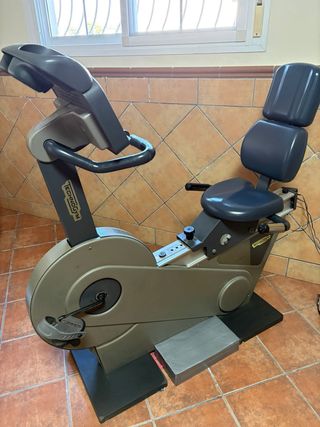 Bicicleta Technogym Recline 600 XPro (averiada)* Vendo bici estática profesional Technogym Recline 600 XPro. Muy cómoda, con respaldo y asiento ajustable. Ideal para rehabilitación o entrenamiento. ✅ Pantalla con info: tiempo, velocidad, calorías, pulso, etc. ✅ Sensor de pulso en asiento ✅ Ruedas para moverla fácilmente ✅ Conexiones de audio y USB ✅ Muy robusta y estable ⚠️*Avería:* el sistema de resistencia no funciona, por lo demás está en buen estado. Se enciende y muestra los datos sin problema. Perfecta para quien sepa repararla o necesite repuestos. Precio negociable.