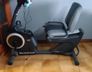 Bicicleta estática reclinada NordicTrack VR19. - Diseño ergonómicoy ajustable para mayor comodidad. - Pantalla digital para seguimiento de entrenamientos. - Soporte para botella de agua integrado. - Pedales ajustables. - Ventilador integrado -Programas de entrenamientos en la consola - Velocidades ajustables - Medidor de la frecuencia cardiaca en el mango Incluye el manual de instrucciones, y no se ha usado casi desde la comprar.