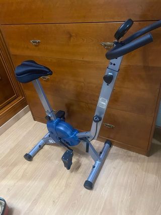 Bicicleta estática plegable en perfecto estado, ideal para entrenar en casa. Compacta, fácil de guardar y ajustar. Incluye pantalla para seguimiento de calorías, distancia y tiempo. ¡Lista para usar!”
