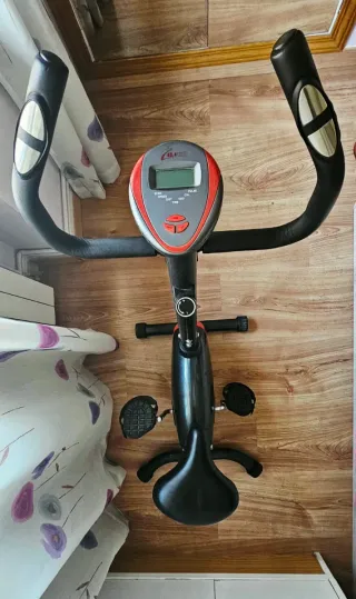 Bicicleta estática Hi-Force en buen estado. Perfecta para hacer ejercicio en casa. - Marca: Hi-Force - Monitor digital que muestra el tiempo, velocidad, distancia y calorías quemadas. - Manillar multiposición. - Sillín cómodo y ajustable. Esta nueva solo que tiene los ruedines rotos de una mudanza.