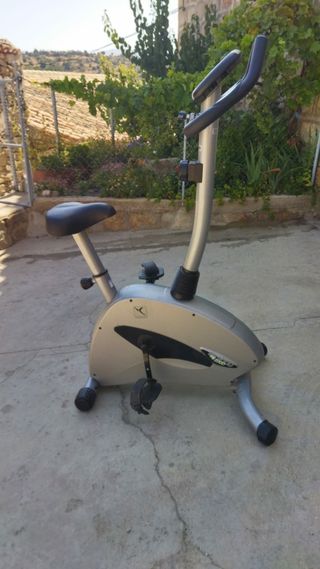 Bici estatica con control de pulso, cuenta las calorías que gastas y los km que se pedalean. Regulable en intensidad de pedaleo. Poco usada