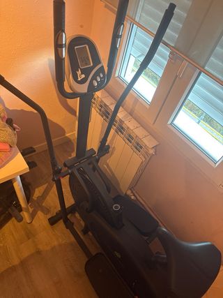 Bicicleta elíptica perfecta para hacer ejercicio en casa. Dispone de 15 niveles de resistencia y diferentes funciones de tiempo y dificultad. Cuenta con ruedas incluidas para facilitar el desplazamiento. La estructura es metálica y tiene medidor de esfuerzo en el manillar para hacer un seguimiento de ritmo cardiaco y calorías quemadas. Apenas ha tenido uso, no tiene ni un rozón ni desperfecto y está impecable. Se vende montada tal cual se ve en las imágenes y se incluye manual de instrucciones y usos. Precio negociable (Pesas no incluidas).
