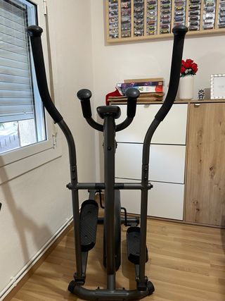 Vendo bicicleta elíptica de color gris de la marca dechatlon ideal para entrenamientos en casa. Tiene pantalla para ver km/calorías. - Pedales antideslizantes. - Manillar con agarres acolchados. Prácticamente nueva. Se vende por no usar.