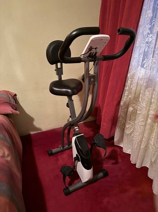 Vendo bicicleta estática plegable Bluefin Fitness en estado excelente. Se ha usado muy poco y está prácticamente como nueva. Muy cómoda gracias al asiento con respaldo, ideal para entrenar en casa. Es silenciosa, estable y ocupa muy poco espacio porque se puede plegar. Características: • Asiento amplio con respaldo • Resistencia regulable • Pantalla con tiempo, velocidad, distancia y calorías • Muy silenciosa • Fácil de plegar y guardar La bicicleta funciona perfectamente. La pantalla a veces falla, probablemente sea algo sencillo de arreglar. Se vende porque no se usa. Costó 179€ nueva.