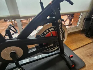 Bicicleta estática de la marca Schwinn, modelo IC7. Diseñada para entrenamientos de ciclismo indoor. - Volante de inercia de 18 kg. - Sillín ajustable en altura y profundidad. - Manillar ajustable. - Pedales con agarre. - Pantalla LCD para seguimiento de métricas. - Estado impecable