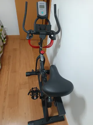 Bicicleta estática de la marca domyos, ideal para entrenamientos en casa. - Diseño robusto y estable. - Asiento ajustable. - Pedales con agarre. Le falta el manillar pero funciona Zona santa eulalia