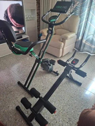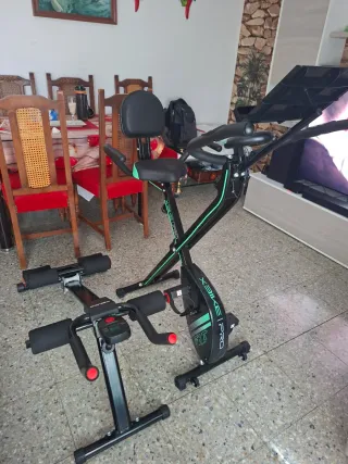 Conjunto de equipamiento deportivo para el hogar. - Bicicleta estática Cecotec XBIKE PRO. - Máquina de abdominales RELIFE.