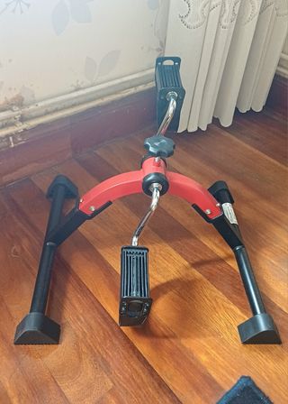 Pedales de bicicleta estática en color rojo y negro. Ideales para ejercicio en casa. - Estructura metálica. - Pedales con correas ajustables. Sin apenas uso.