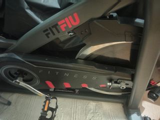 Bicicleta estática de la marca FITFIU. - Diseño moderno en color negro y detalles en rojo. - Pedales con correas ajustables. - Estructura robusta para mayor estabilidad.