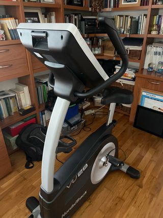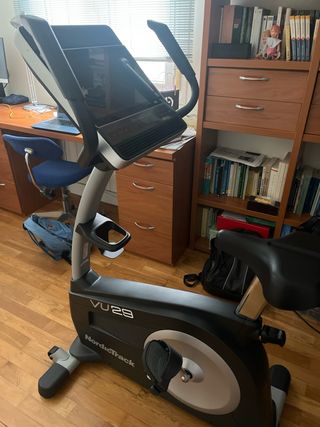 Bicicleta estática NordicTrack modelo VU29. - Diseño moderno en color negro y blanco. - Asiento ergonómico. - Manillar ajustable.