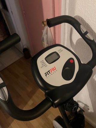 Bicicleta estática en buen estado. Ideal para hacer ejercicio en casa. - Resistencia regulable. - Monitor digital (se ve algo deteriorado en la imagen). - Diseño compacto y fácil de guardar.