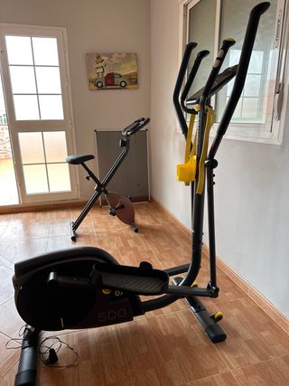 Bicicleta elíptica de la marca Domyos, utilizada muy pocas veces. - Color negro y amarillo. - Diseño moderno y compacto.