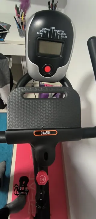 Bicicleta estática en excelente estado, como si fuera nueva. - Diseño moderno y funcional. - Estructura robusta para mayor estabilidad. - Pedales ergonómicos para un pedaleo cómodo. - Está como nueva porque me la regalaron y no he podido utilizarla - Sólo le falta el aparato para medir los kilómetros y esas cosas porque se perdió en la mudanza pero en AliExpress o Amazon lo hay por apenas 9 euros . - El precio de compre fue más de 200 e. Lo he bajado por la falla del aparato de medir