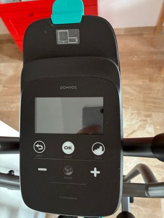 Bicicleta elíptica Domyos 120 en perfecto estado sin apenas uso.de color gris y negro con detalles en azul. - Estructura metálica. - Pedales amplios. - Manillar ergonómico.
